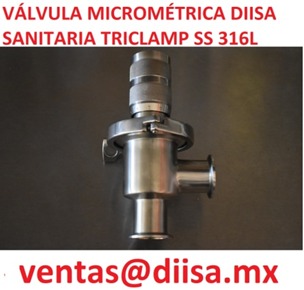 Válvulas Micrométricas Sanitarias Reguladoras de Flujo Conexiones Clamp, Triclamp DIN 32676, DIN 11851 SMS 1145 de 1.0”, 1.5”, 11/2”, DN 1” DN 1.5” DN 1 ½” DN 2.0” SS 304L SS 316L, también disponibles en Conexiones DIN 11850 11851 en las medidas DN 25, DN32, DN40, DN50, en Ciudad de México.