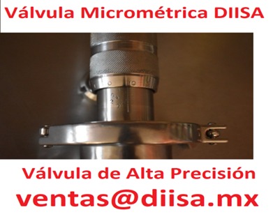 La Válvula Micrométrica Regula o Dosifica con alta precisión el flujo o caudal de un fluido, principalmente líquidos, agua o bebidas que requieren un proceso de dosificación o regulación de flujo en una línea grado alimenticio.